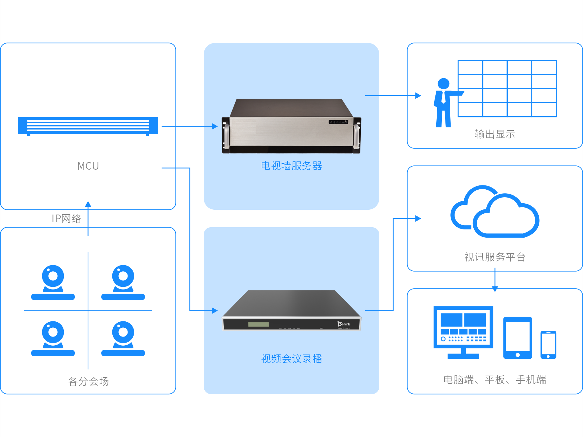 銳取為視頻會(huì)議??提供全?的配套服務(wù),包括視頻會(huì)議錄播、視頻會(huì)議電視墻。視頻會(huì)議錄播解決??關(guān)于重要遠(yuǎn)程會(huì)議內(nèi)容進(jìn)?記錄,并可進(jìn)?在線(xiàn)分享,從?實(shí)現(xiàn)對(duì)重要會(huì)議的存檔、以及擴(kuò)?會(huì)議的覆蓋?。視頻會(huì)議電視墻解決多會(huì)場(chǎng)?清同步呈現(xiàn)的應(yīng)?需求,?泛應(yīng)?于如應(yīng)急管理,指揮調(diào)度等場(chǎng)景需求。