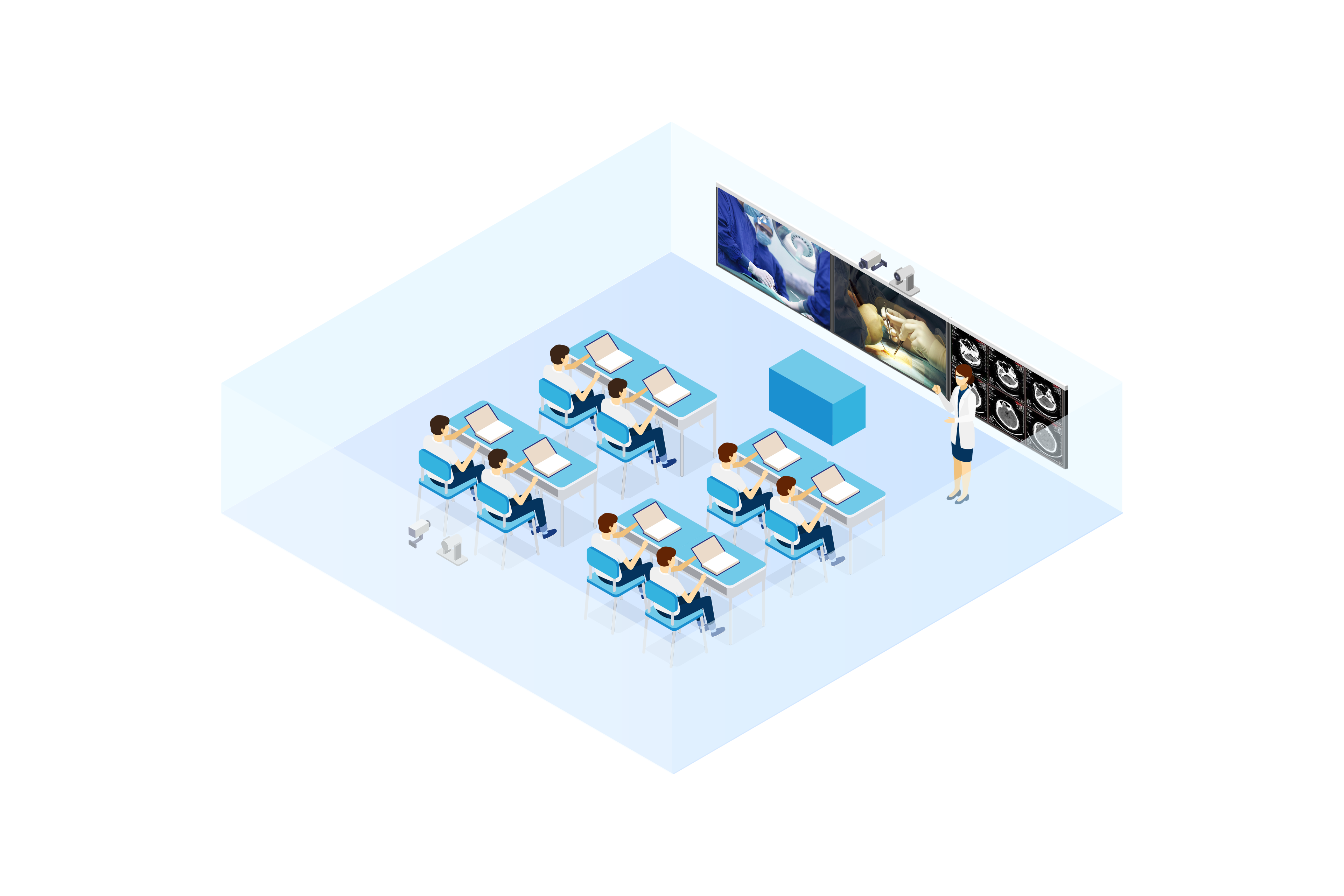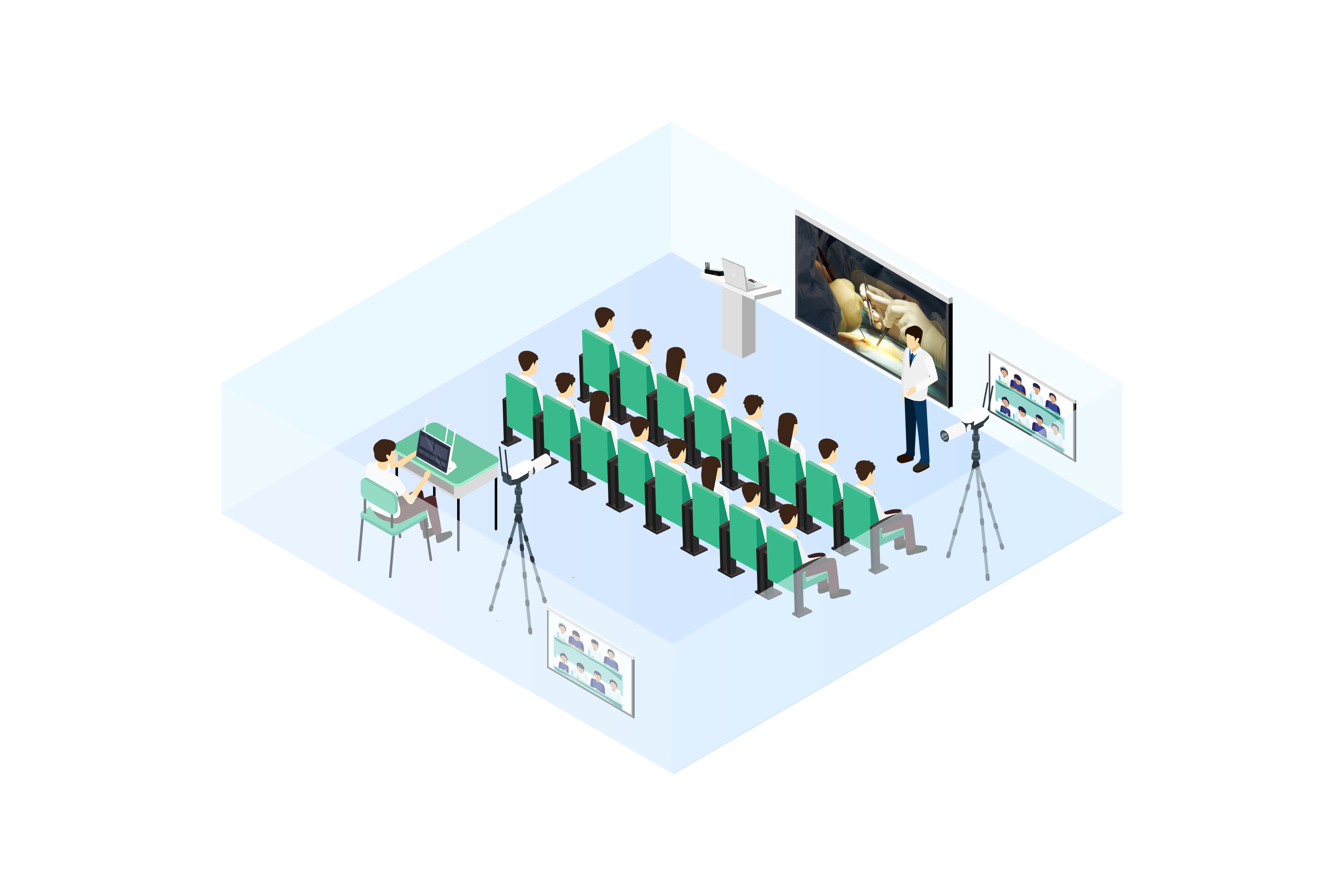 銳取標(biāo)準(zhǔn)互動示教室無需裝修部署簡單采用"所見即所錄"的模式,對觀摩訓(xùn)練、手術(shù)轉(zhuǎn)播、教學(xué)模擬等過程進(jìn)行真實全面的記錄,滿足本地示教教學(xué)、遠(yuǎn)程互動教學(xué)、在線直播教學(xué)等場景應(yīng)用。