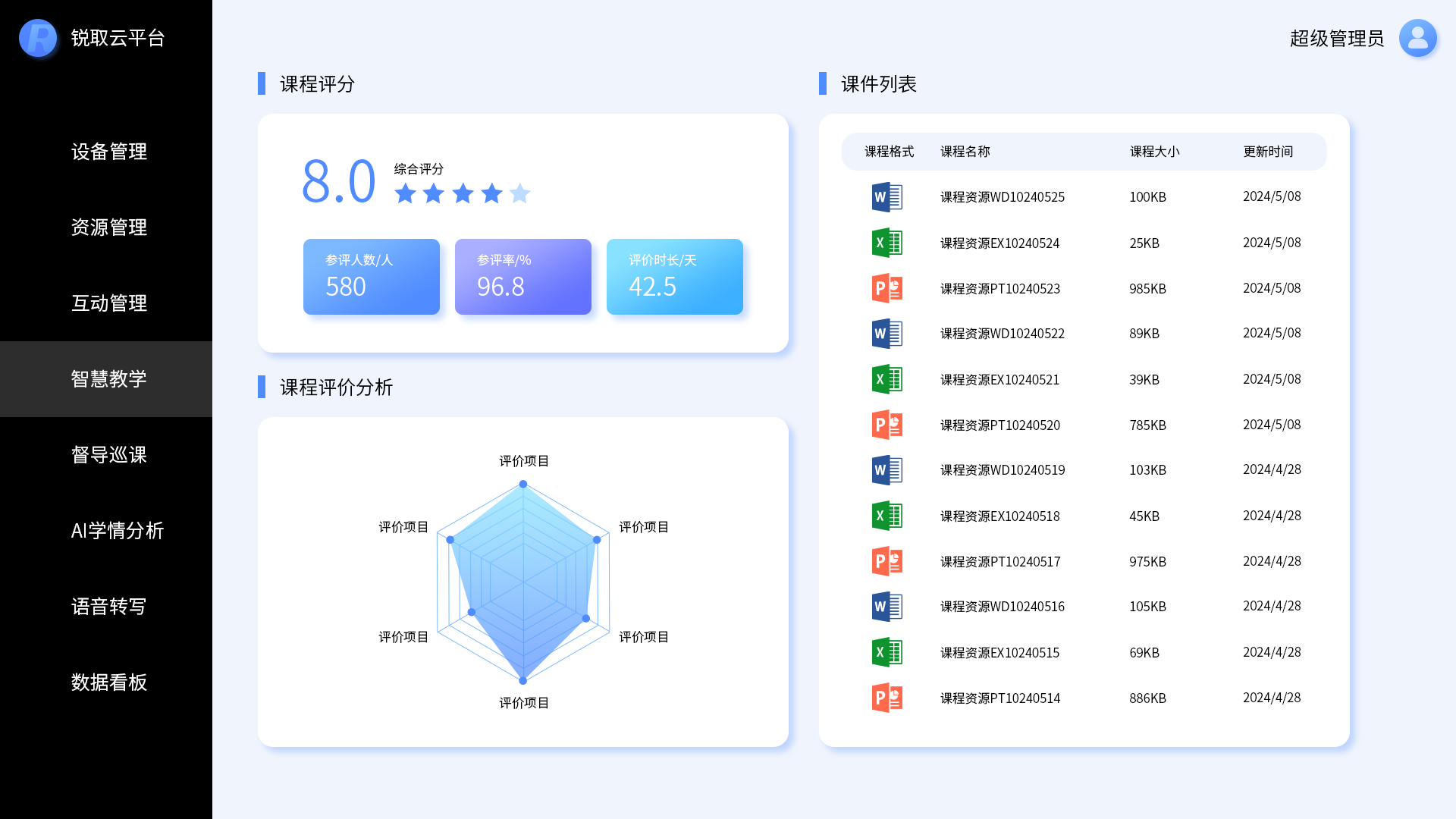 統(tǒng)計報表匯總:匯總巡課數(shù)據(jù)生成統(tǒng)計報表,展示督導巡課成果