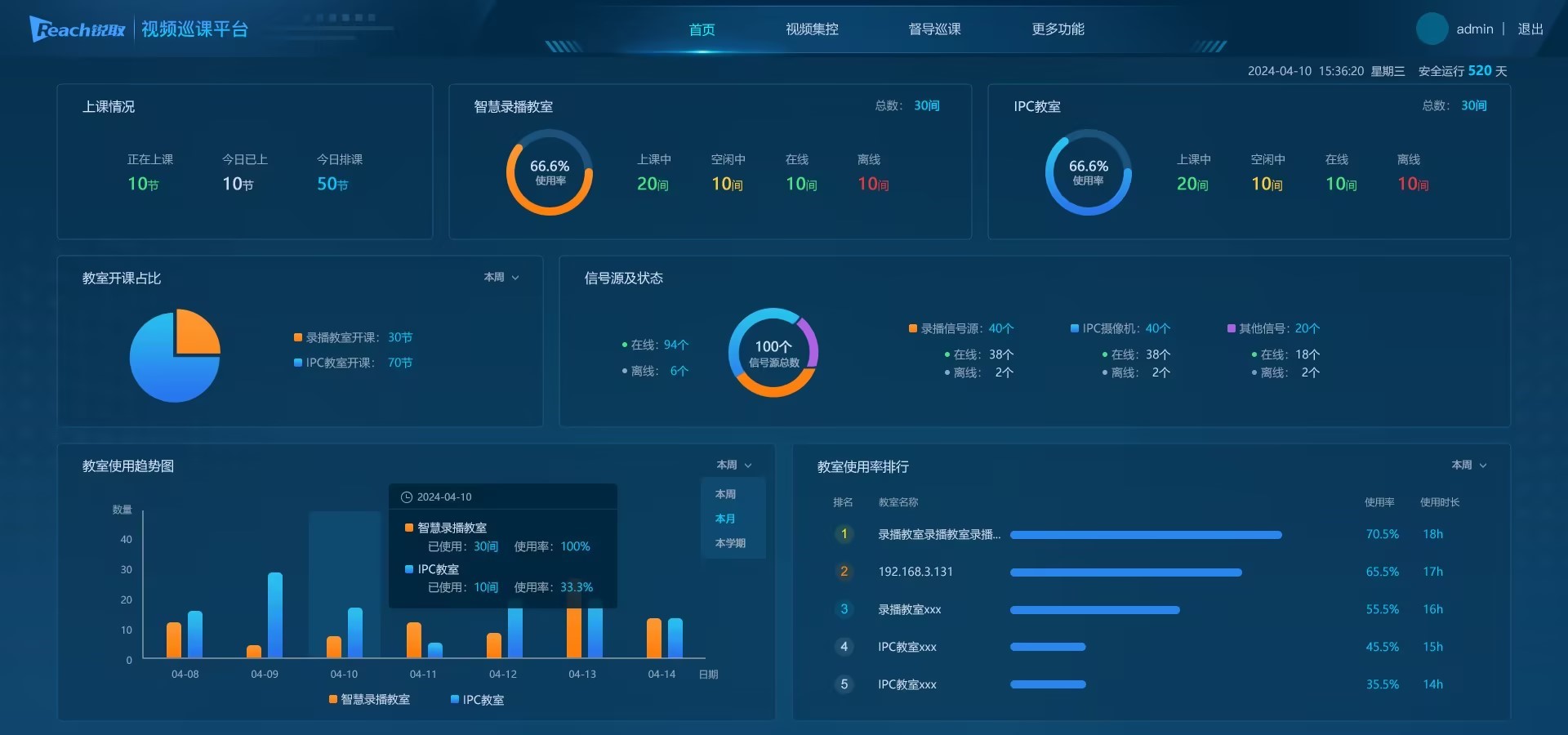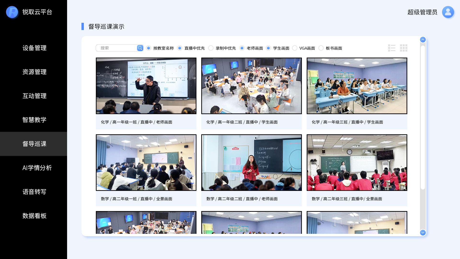 可視化巡課:多種布局切換,多班級多校區(qū)集中可視化巡課